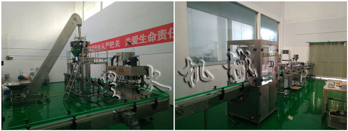駐馬店平輿康博匯鑫油脂有限公司生產車間-瓶裝顆粒灌裝生產線-全自動瓶裝顆粒灌裝壓蓋貼標生產線-應用生產現場